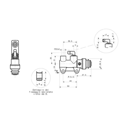 Brembo Rear Brake Master Cylinder PS13B 40mm Mounting Holes Side Outlet