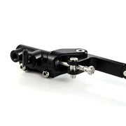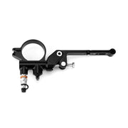 Fully CNC machined from 6082 aluminium and finished in either hard anodised grey or black. Comes complete with brake fluid reservoir, reservoir bracket, tubing, thumb master cylinder and fork bracket to mount.