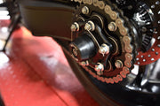 Another industry first that will alleviate the frustration, hassle, and time of removing the standard slider option sold by other companies. You know the type – 10mm nyloc nut either side of a rod requiring removal to fit the rear stand.