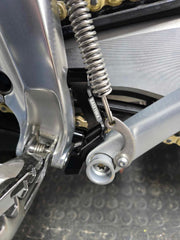 The OEM bracket’s steep lean angle is fixed by the Racetorx side stand bracket which is designed to have a 30mm lower mounting point.