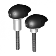 The 'Street' set features longer tubes to position the Bullet beyond the fairing like a conventional crash knob, offering greater protection for the fairing as well as other frame and chassis components. Approx tube length (end to shoulder) 50mm (left) 30mm (right).