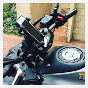 lIt consists of a zinc coated u-bolt base, a double socket arm and universal X-Grip phone cradle. The base includes black cover caps that are placed over the exposed ends of the u-bolt, and 1" socket arm system allows for adjustment at both ends, allowing for almost infinite viewing angles. Also includes a RAM-HOL-UN7TU :: RAM Tether for UN7 X-Grip Holders.