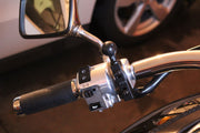 This product, combined with a RAM Mount holder/cradle, will let you attach your electronic device to your motorcycle brake/clutch reservior, or your handlebars, or any bar that is between 0.5" and 1.25" (1.27cm and 3.17cm) in diameter.